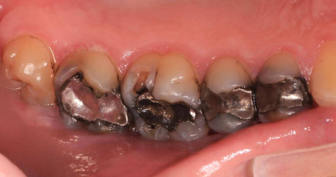 Sequential replacement of failing mercury fillings with porcelain restorations, whilst keeping as much tooth structure intact as possible.